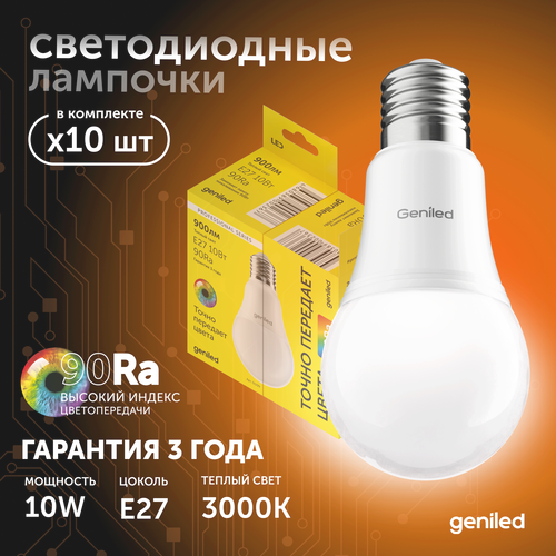 Купить Светодиодная лампа Энергосберегающая Geniled E27 A60 10Вт 3000K 90Ra Груша 10 шт с доставкой по всей России.