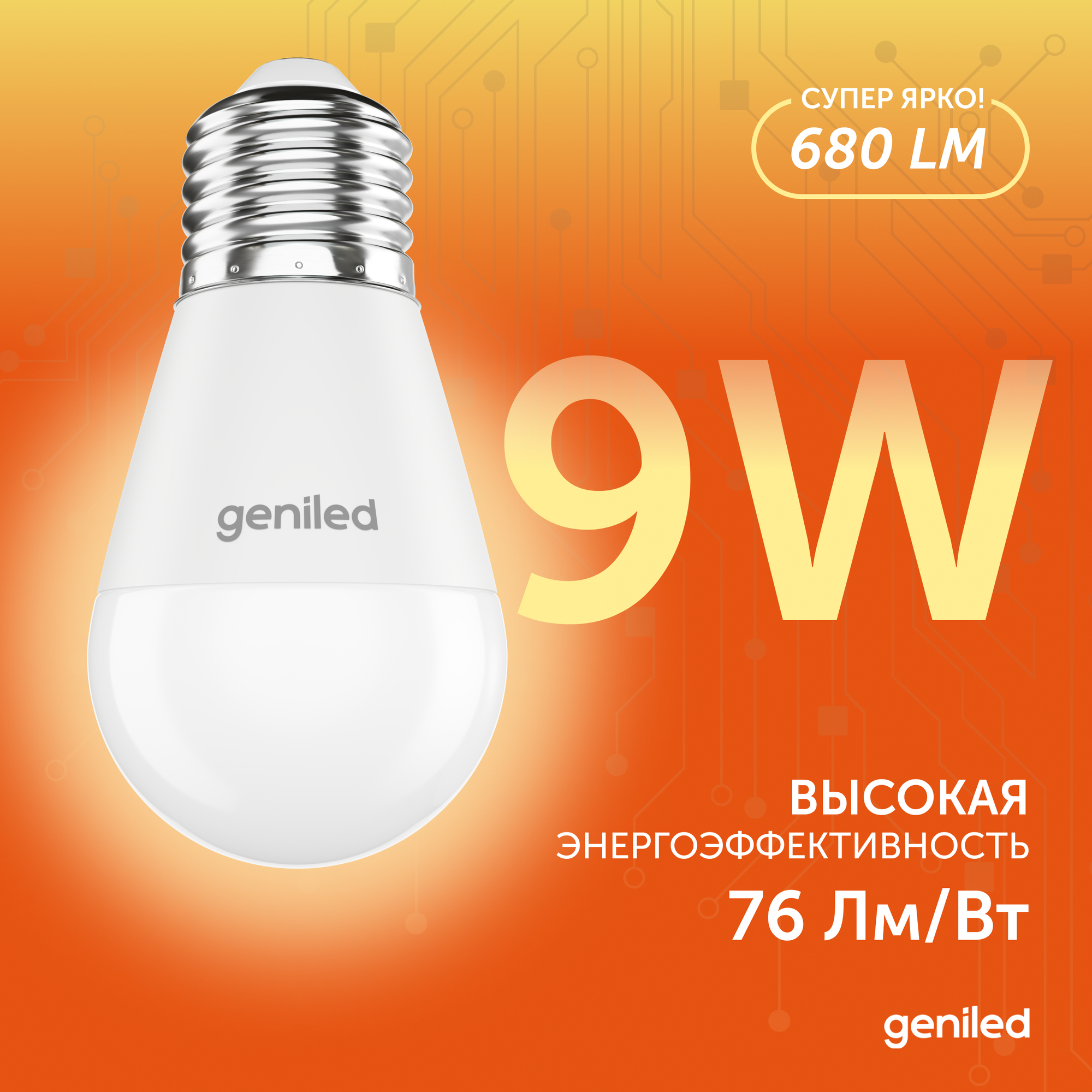 Светодиодная лампа Энергосберегающая Geniled E27 G45 9Вт 3000K 90Ra Шар 10 шт: сравнение цен, характеристики, фото, актуальное наличие и цены.