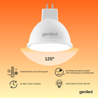 Купить Светодиодная лампа Энергосберегающая Geniled GU5.3 MR16 6Вт 3000K 90Ra Софит 10 шт с доставкой по всей России.