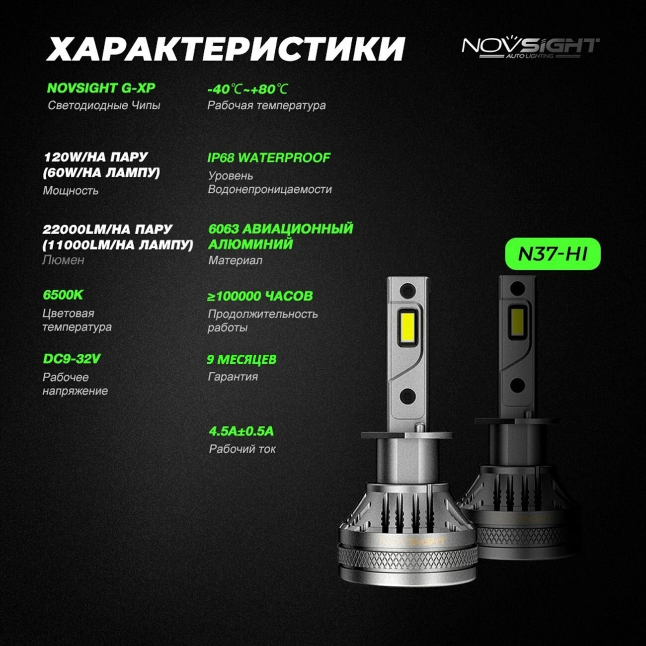 Светодиодная лампа Novsight N37 H1 цоколь P14,5s 120Вт 2шт 22000Лм 6500К белый свет LED автомобильная: сравнение цен, характеристики, фото, актуальное наличие и цены.