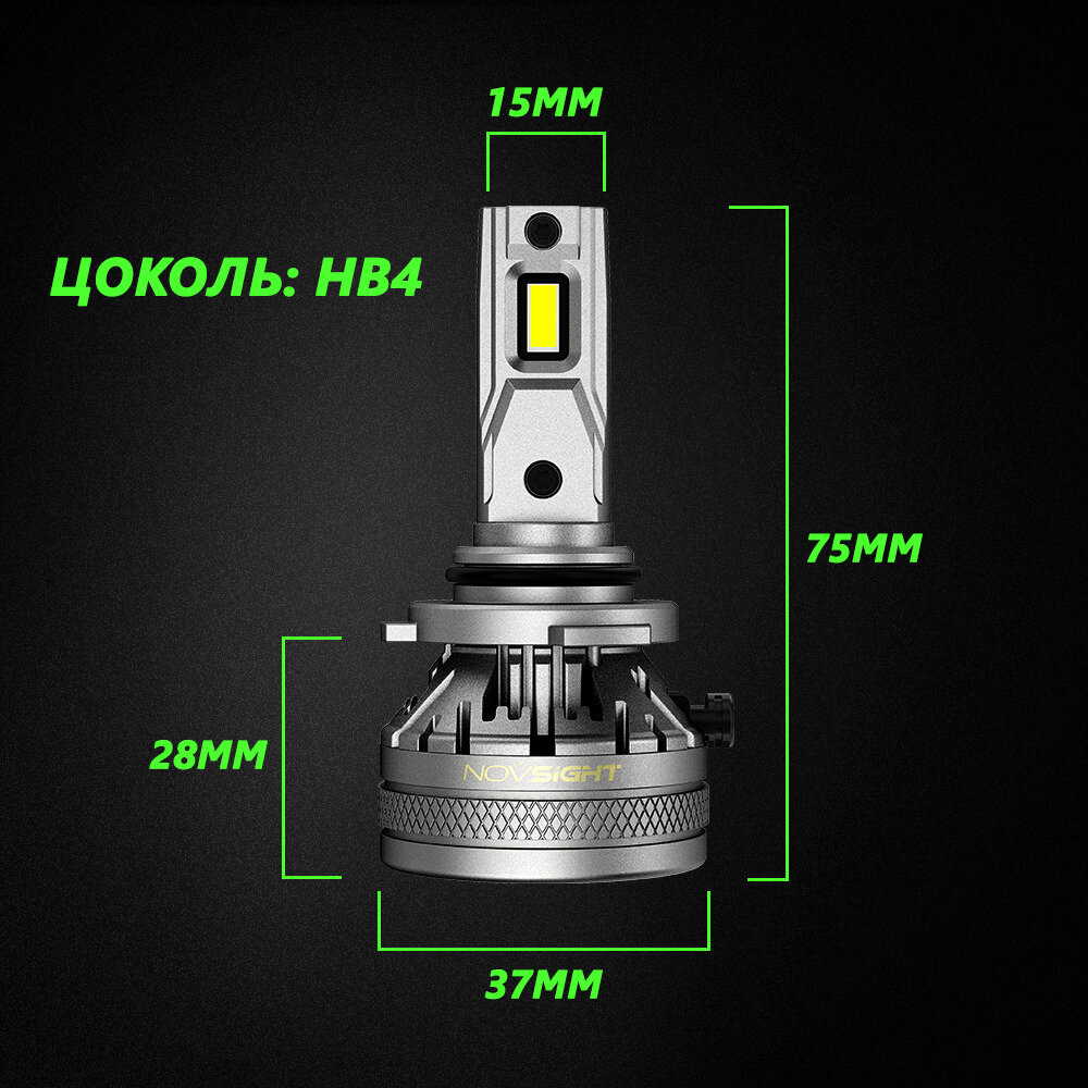 Светодиодная лампа Novsight N37 HB4 9006 цоколь P22d 120Вт 2шт 22000Лм 6500К белый свет LED автомобильная: сравнение цен, характеристики, фото, актуальное наличие и цены.