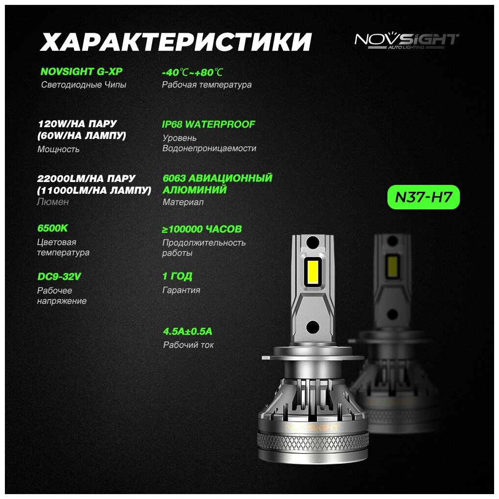 Светодиодная лампа Novsight N37 HIR2 9012 цоколь PX22d 120Вт 2шт 6500К 22000Лм белый свет LED автомобильная: сравнение цен, характеристики, фото, актуальное наличие и цены.