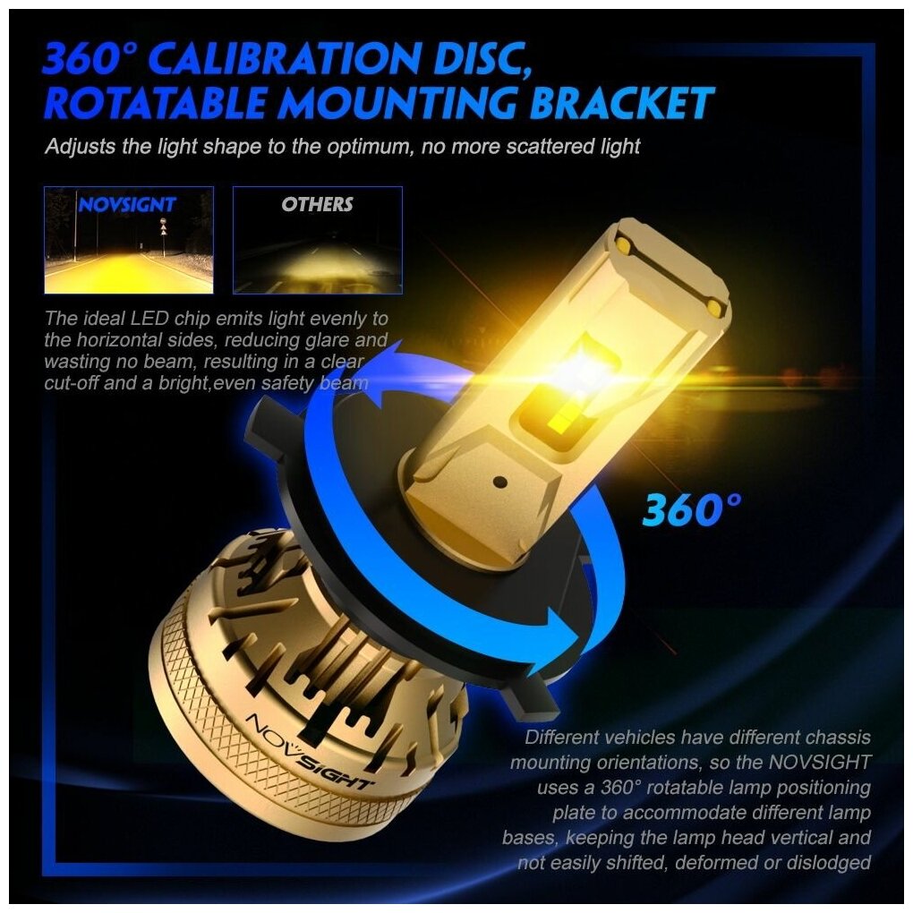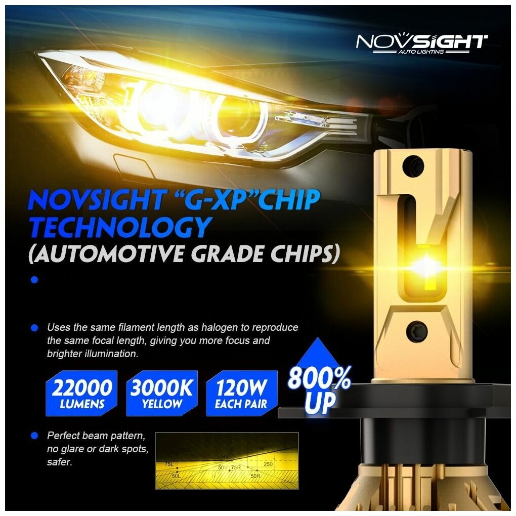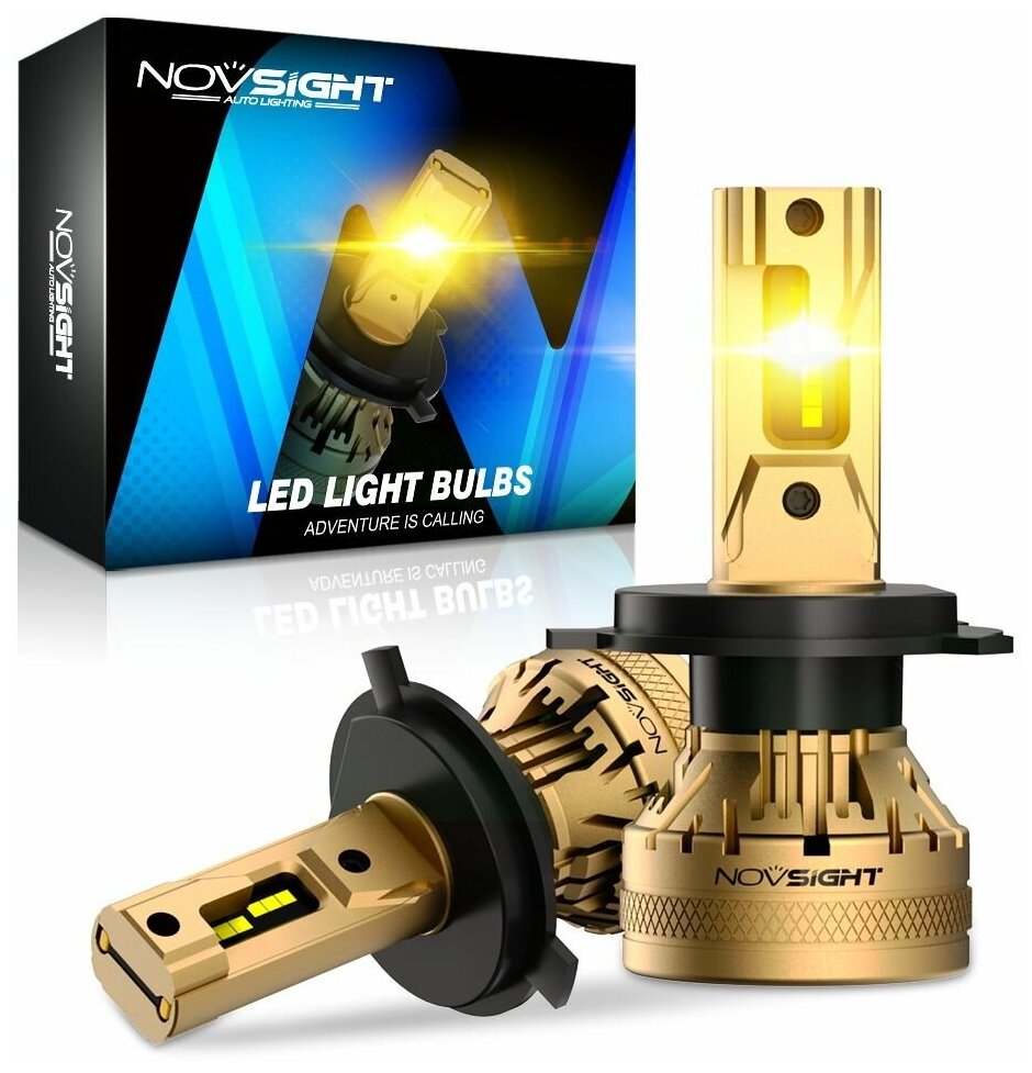 Светодиодная лампа Novsight N37Y H4 цоколь P43t 120Вт 2шт 22000Лм 3000K желтый свет LED автомобильная: сравнение цен, характеристики, фото, актуальное наличие и цены.
