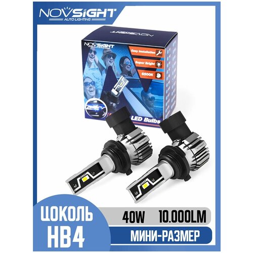 Светодиодная лампа Novsight N57 HB4 9006 цоколь P22d 40Вт 2шт 6500К 10000Лм мини размер белый свет LED автомобильная: сравнение цен, характеристики, фото, актуальное наличие и цены.
