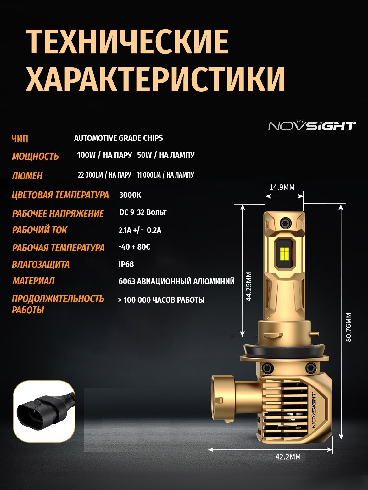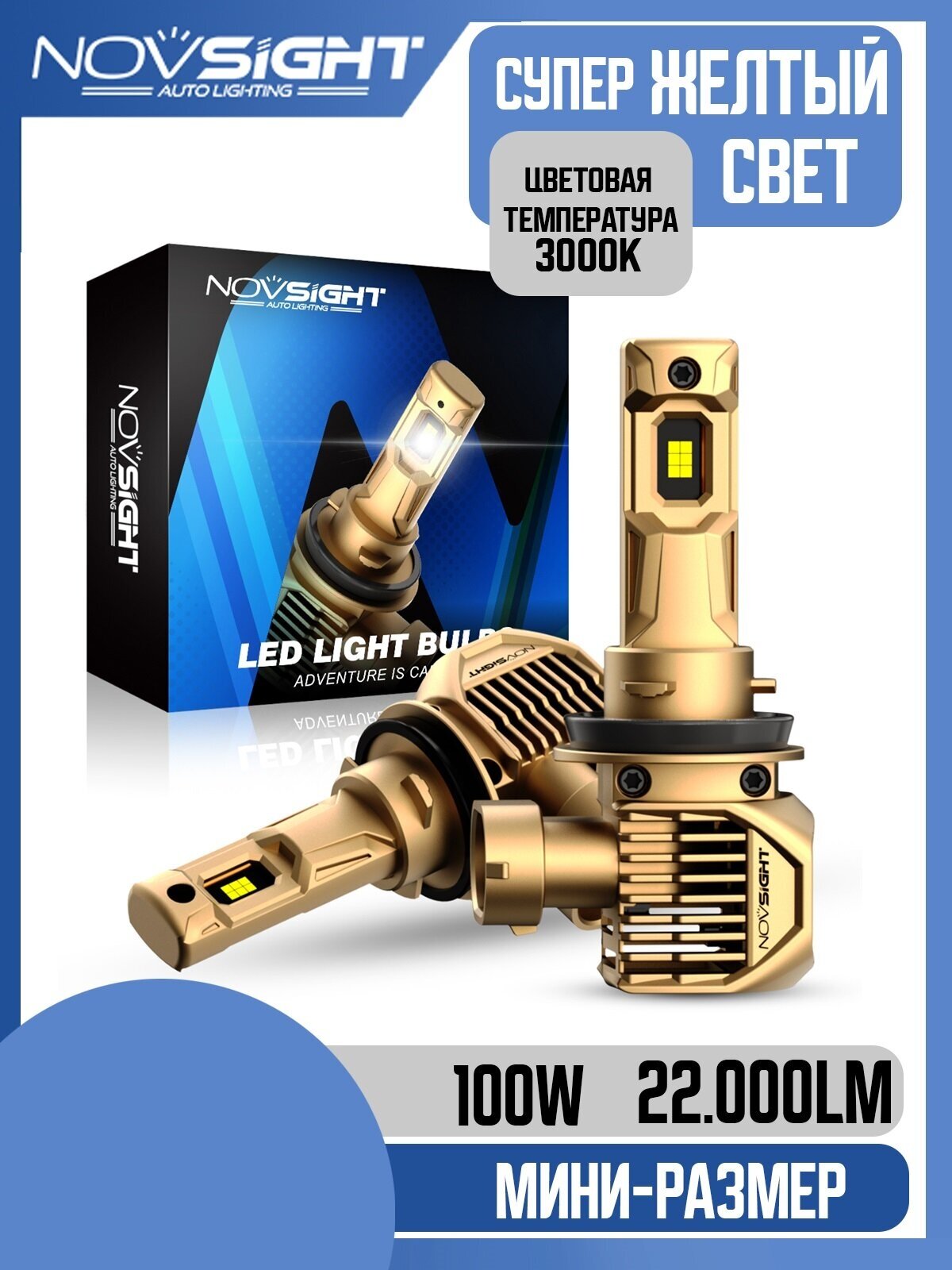 Светодиодная лампа Novsight N62Y H16 цоколь PGJ19-3 100Вт 2шт 22000Лм 3000K желтый свет LED автомобильная: сравнение цен, характеристики, фото, актуальное наличие и цены.