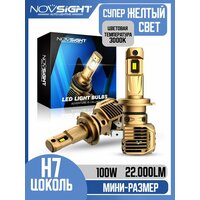 Купить Светодиодная лампа Novsight N62Y H7 цоколь PX26d 100Вт 2шт 22000Лм 3000K желтый свет LED автомобильная с доставкой по всей России.