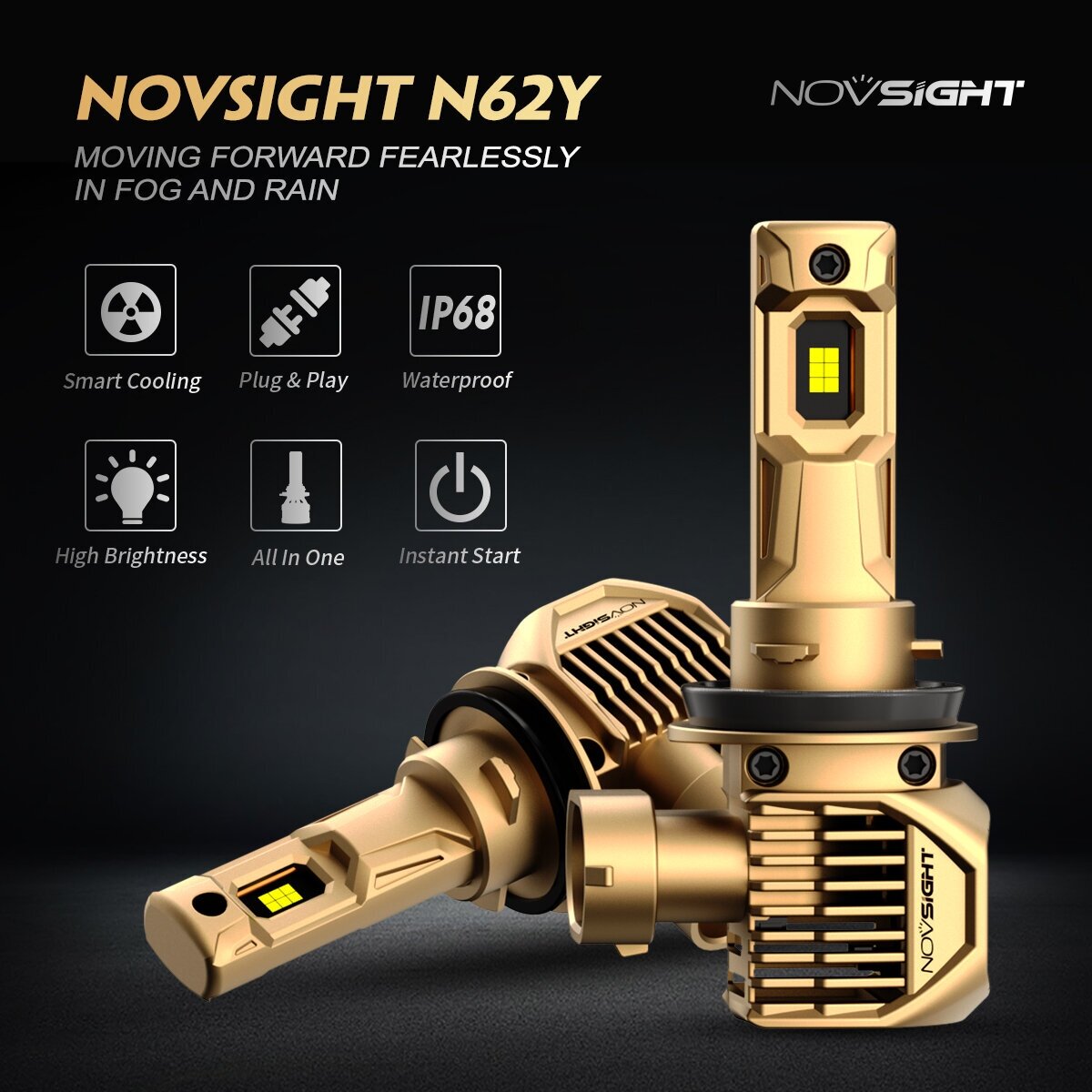 Светодиодная лампа Novsight N62Y H8 цоколь PGJ19-1 100Вт 2шт 22000Лм 3000K желтый свет LED автомобильная: сравнение цен, характеристики, фото, актуальное наличие и цены.