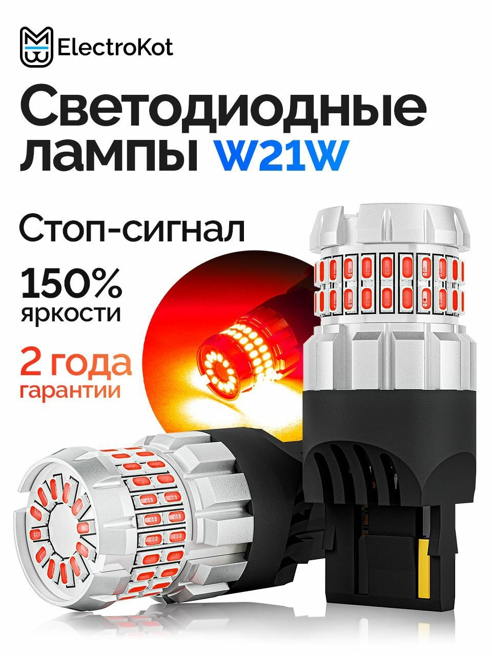 Купить Светодиодная лампа W21W 7440 T20 для авто ElectroKot RoundLight gen2 1000K красный свет 2 шт, в стоп сигнал с доставкой по всей России.