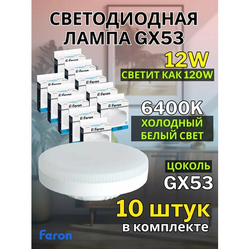 Купить Светодиодная лампочка gx53 12W 6400K 10 шт с доставкой по всей России. Светодиодная лампочка gx53 12W 6400K 10 шт: сравнение цен, характеристики, фото, актуальное наличие и цены.