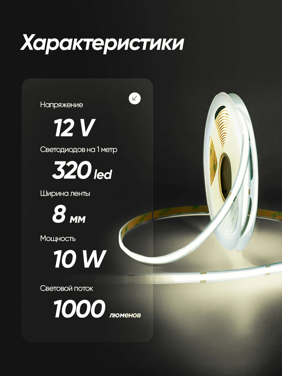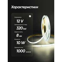 Светодиодная лента 10м COB (320 LED) 12V 10W/м Теплый белый 4000K: сравнение цен, характеристики, фото, актуальное наличие и цены.