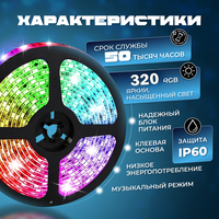 Лента имеет длительный срок службы, в комплекте 1 рулон -20м. п, более 50000 часов, и может использоваться как гирлянда, RGB лампа, светильник, подсветка для монитора, телевизора, ванны и других целей.