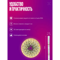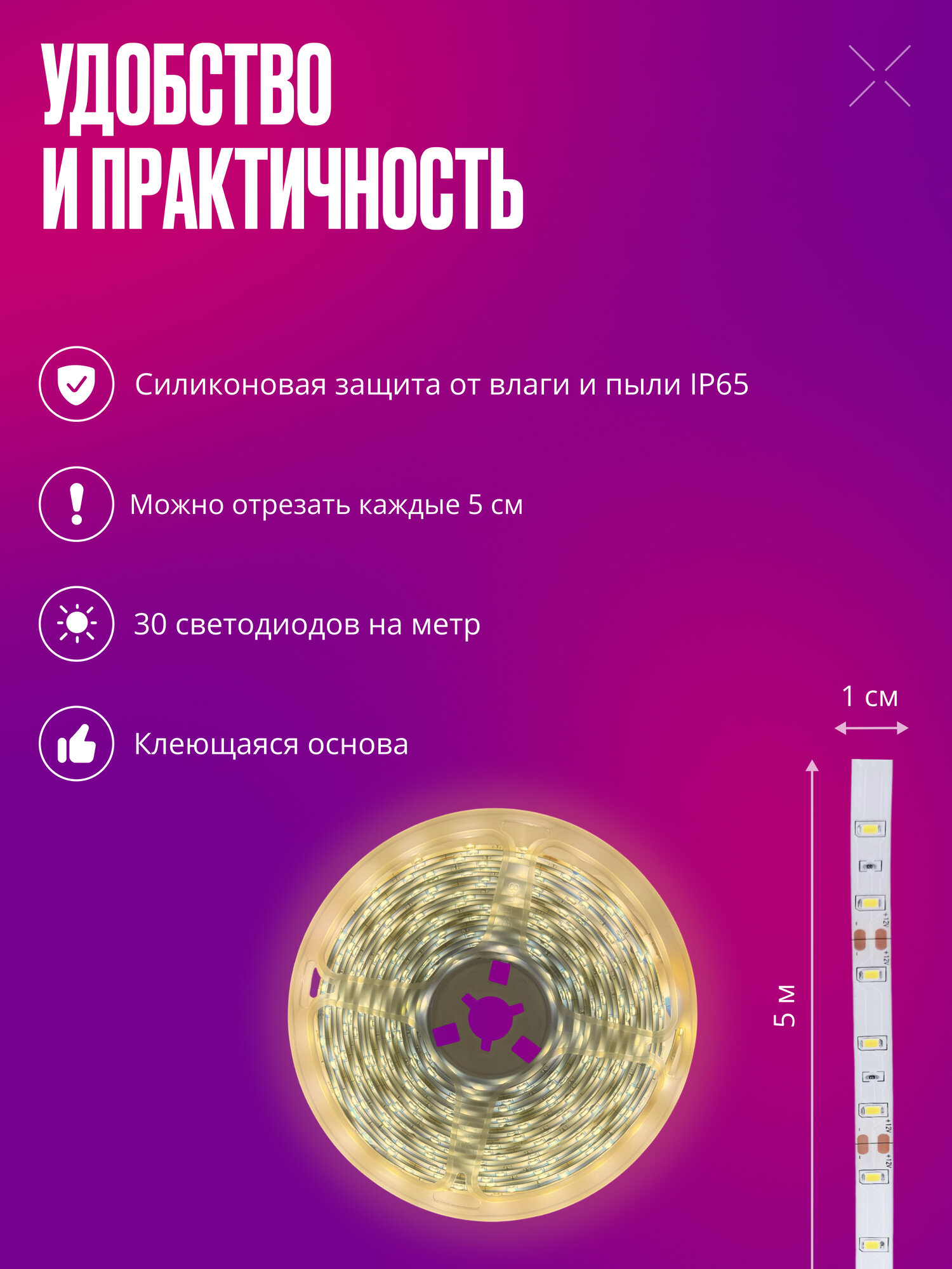 Светодиодная лента 5 м с сенсорным диммером и влагозащитой, одноцветная, теплый белый свет 3000K, 60 Вт: сравнение цен, характеристики, фото, актуальное наличие и цены.