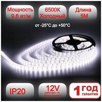 Купить Светодиодная лента 5м 12в, 9,6 вт/м для подсветки дома кухни ресторана, LED 6500К (холодный белый свет) IP20 с доставкой по всей России.