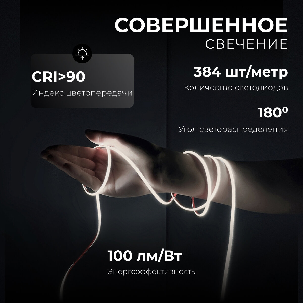 Купить Светодиодная лента Apeyron 00-379 COB, 24В, 4000K, IP20, ширина подложки 3мм, длина 5м, CRI90+ с доставкой по всей России.