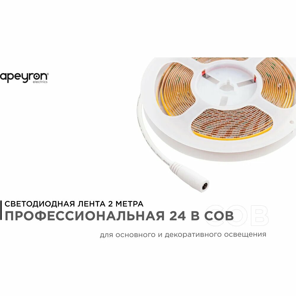Купить Светодиодная лента Apeyron 171ОО 24В, 3000К, 1000 Лм/м, 352д/м, 11Вт/м, COB, IP20, 2 метра с доставкой по всей России.