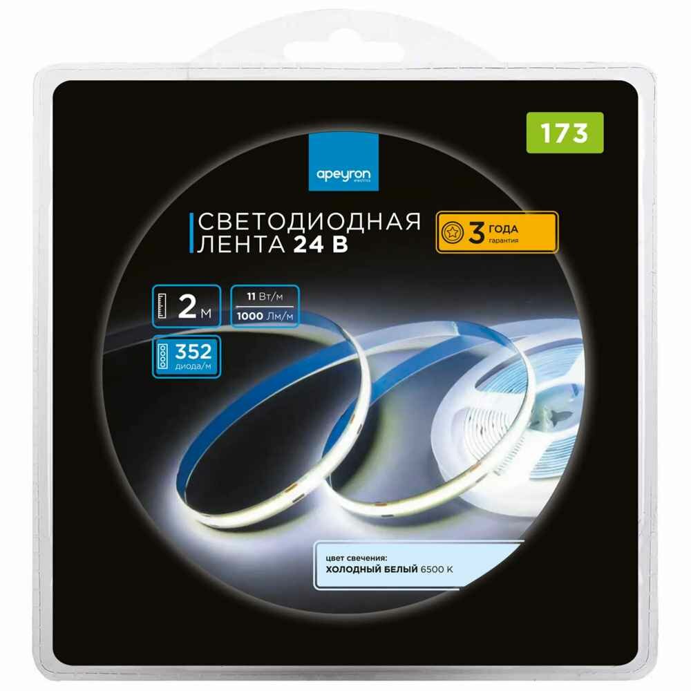 Светодиодная лента Apeyron 173ОО 24В, 6500К, 1000 Лм/м, 352д/м, 11Вт/м, COB, IP20, 2 метра: сравнение цен, характеристики, фото, актуальное наличие и цены.