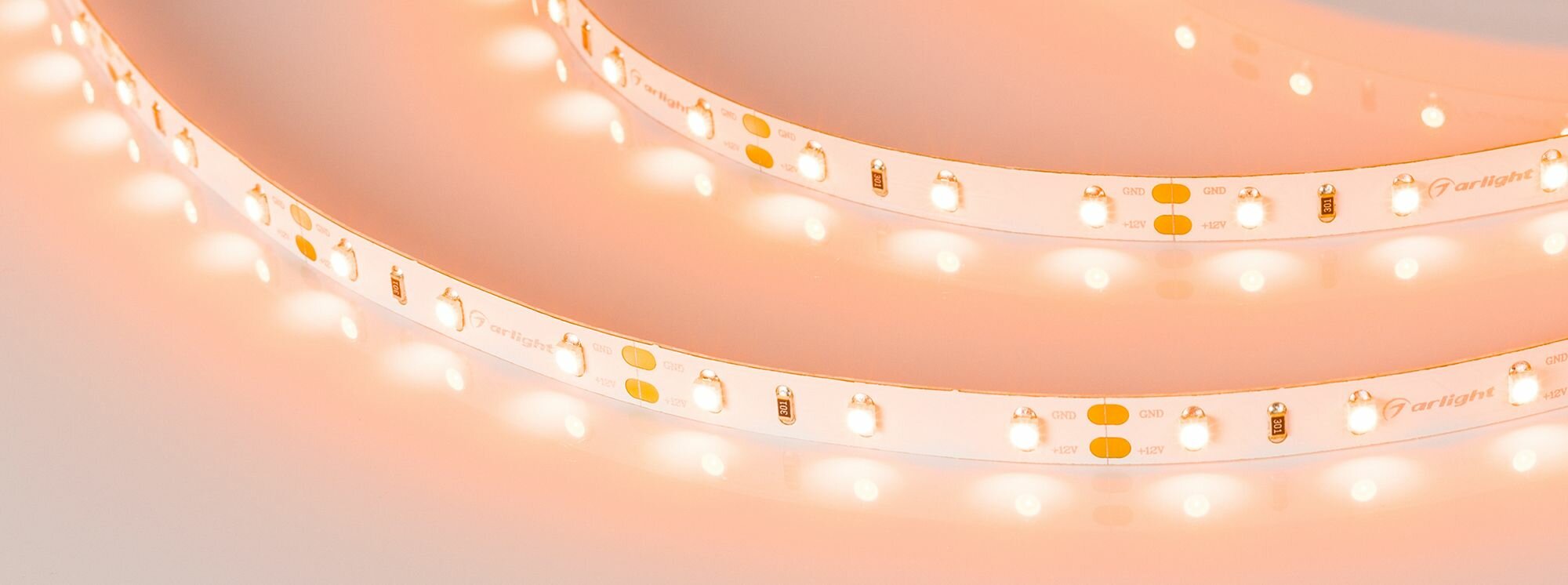 Лента Arlight RT-A60-8mm 12V Orange имеет степень защиты IP20, что делает ее безопасной для использования внутри помещений.