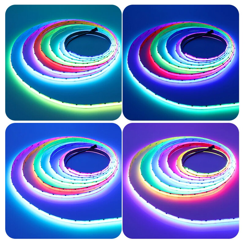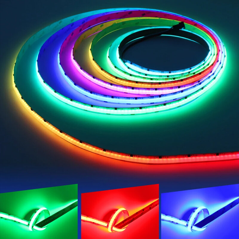 Купить Светодиодная лента COB, 12В. Цвет свечения: RGB. IP33. Катушка 5 метров. Програмируемая. с доставкой по всей России.