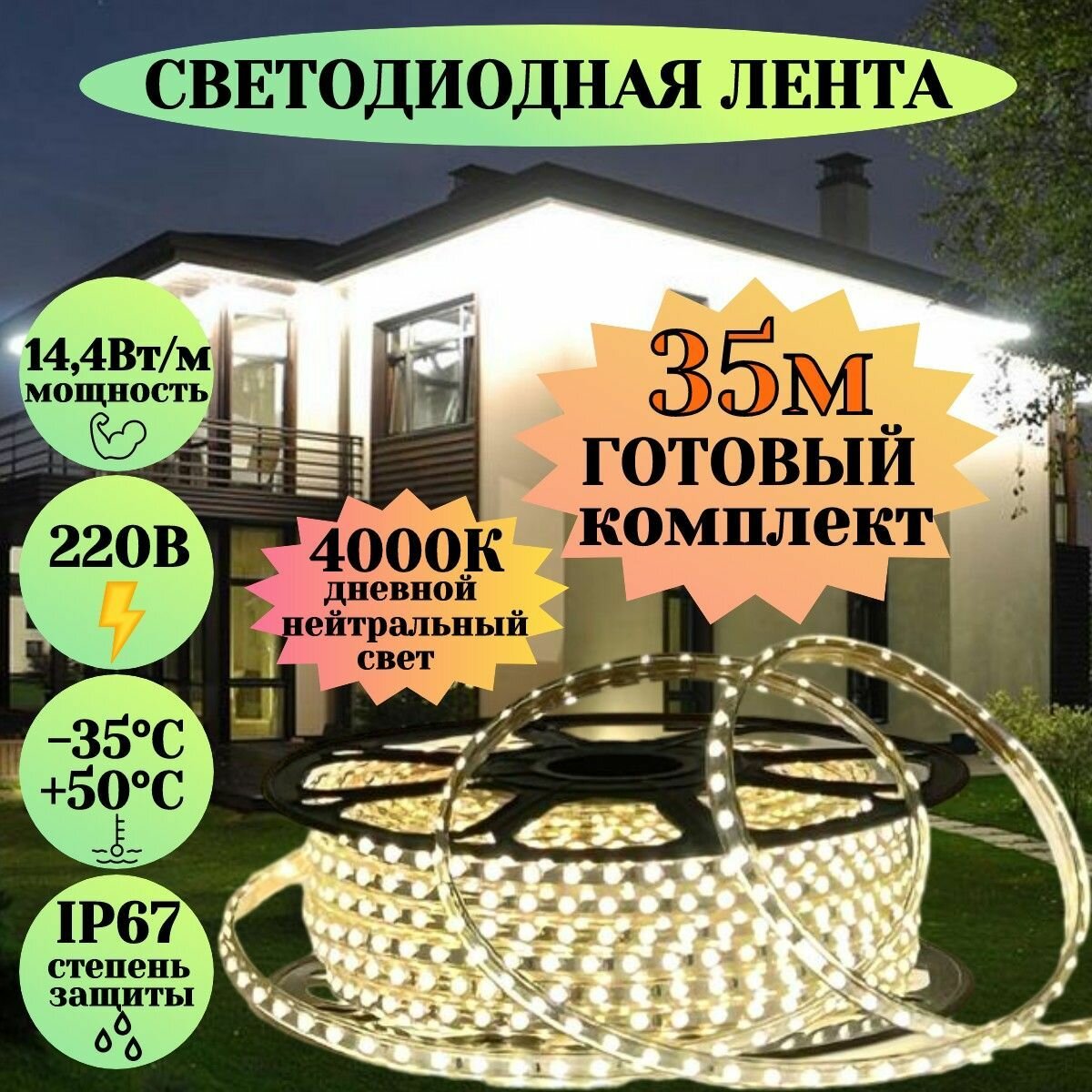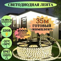 Представляем вам нашу герметичную светодиодную ленту, выполненную в прочном силиконовом покрытии, длиной 35 метров. Эта лента излучает дневной белый свет с цветовой температурой 4000K, создавая яркое и комфортное освещение для любых пространств.