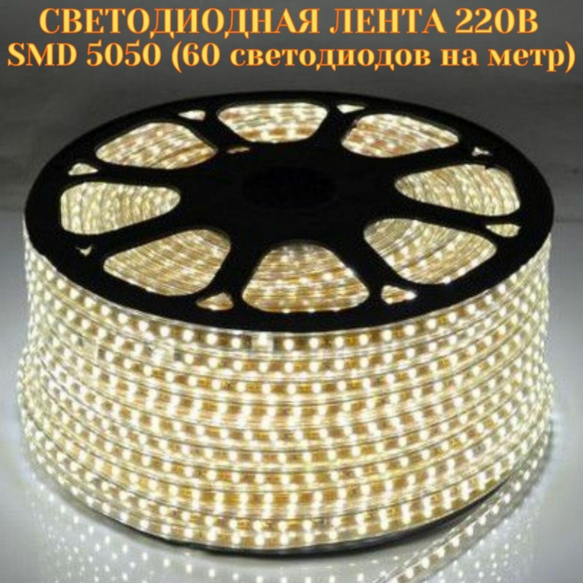 Готовый комплект: Светодиодная лента 40м +шнур питания и скобы крепления.
