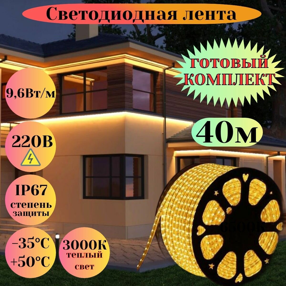 | Комплектация | Светодиодная лента+крепление+заглушка+шнур питания |