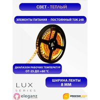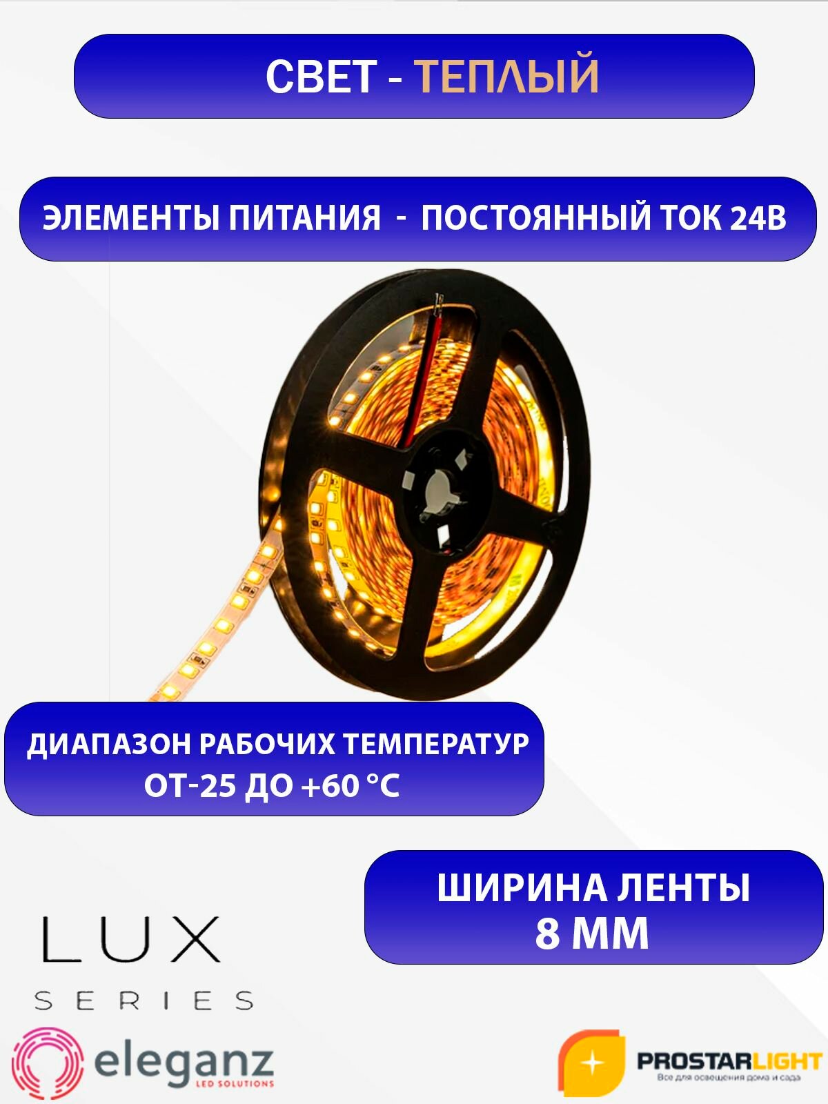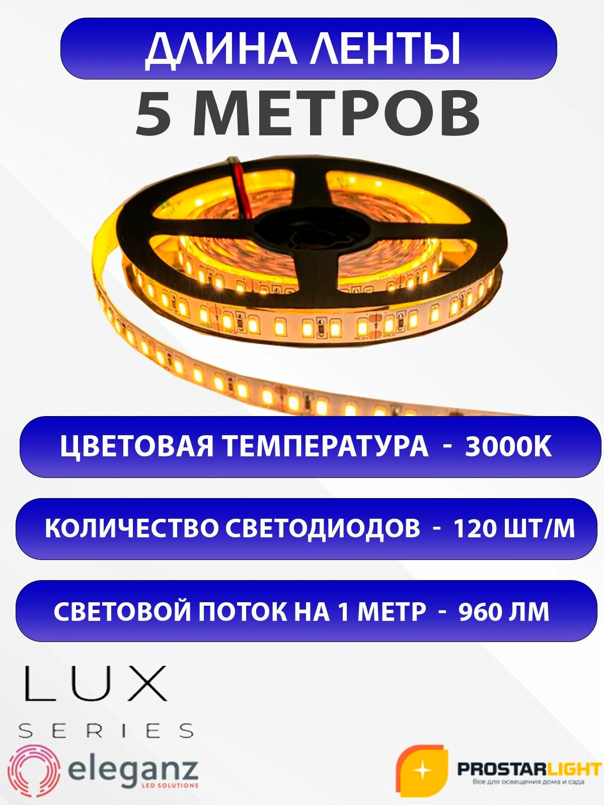 Светодиодная лента «Eleganz» LUX 2835 120 LED 9.6W/M 24V Теплый Свет. 3000К IP20 EL-24V-96WW (1шт. — 5 метров): сравнение цен, характеристики, фото, актуальное наличие и цены.