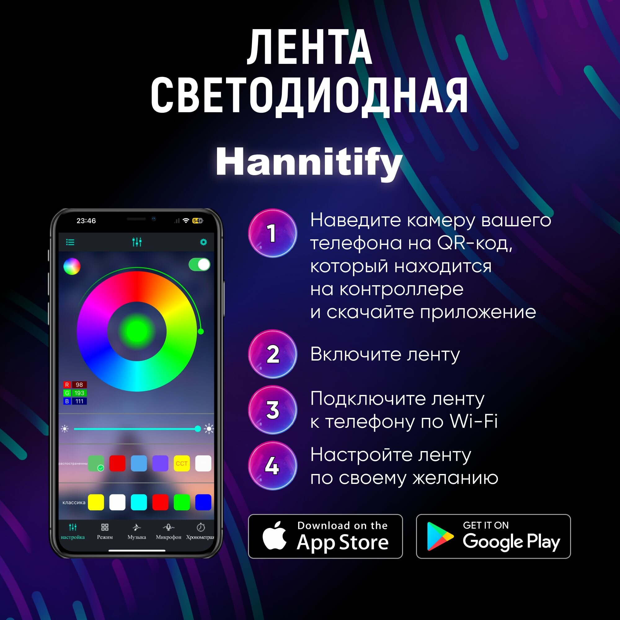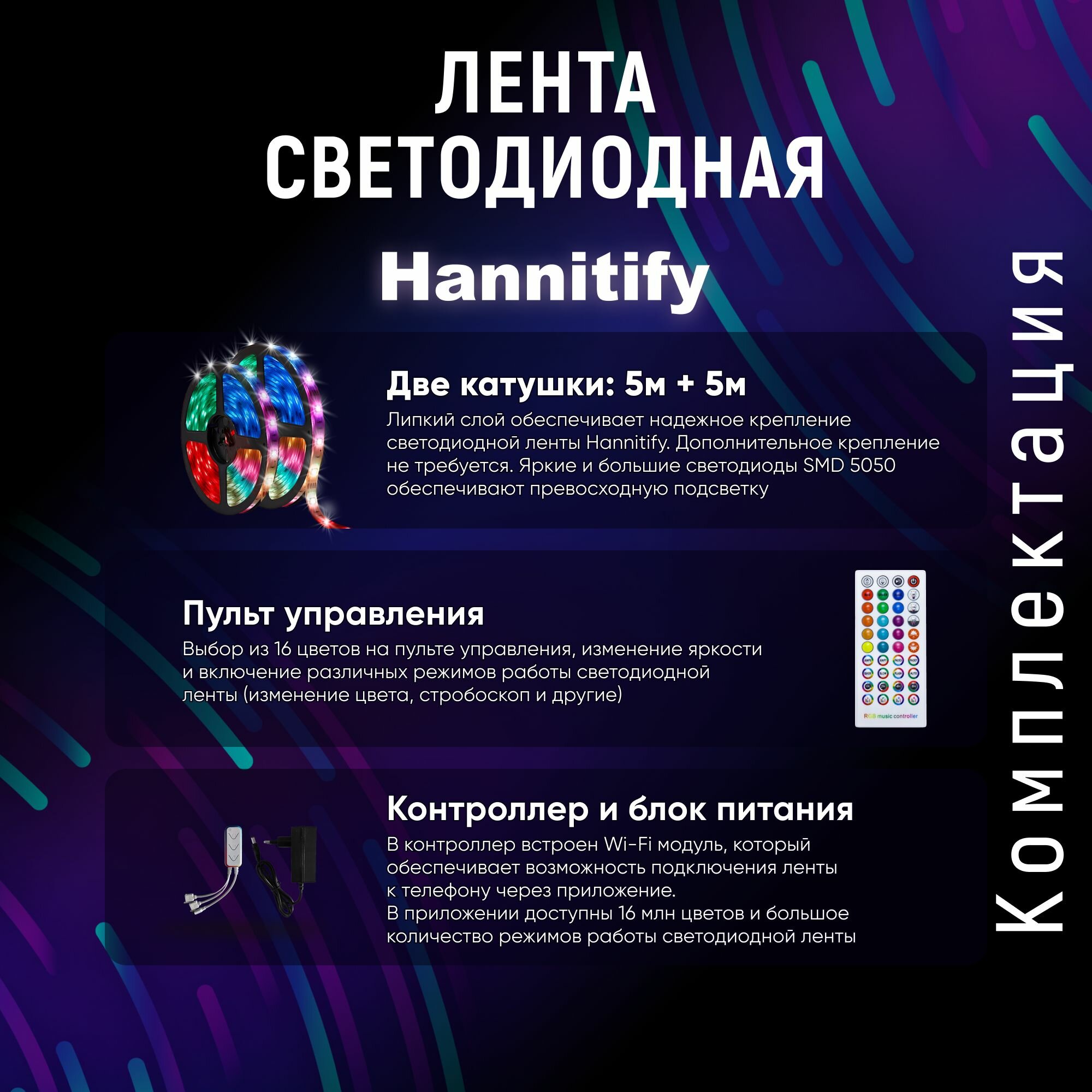- Светодиодная лента Hannitify состоит из SMD светодиодов RGB.
