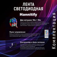 Купить Светодиодная лента Hannitify 20м (10м+10м), 18 LED/m RGB, IP20, c Bluetooth, 12В (блок питания в комплекте), многоцветная, SMD5050. Управление цветом с пульта или телефона через Bluetooth. Свечение в ритм музыки с доставкой по всей России.