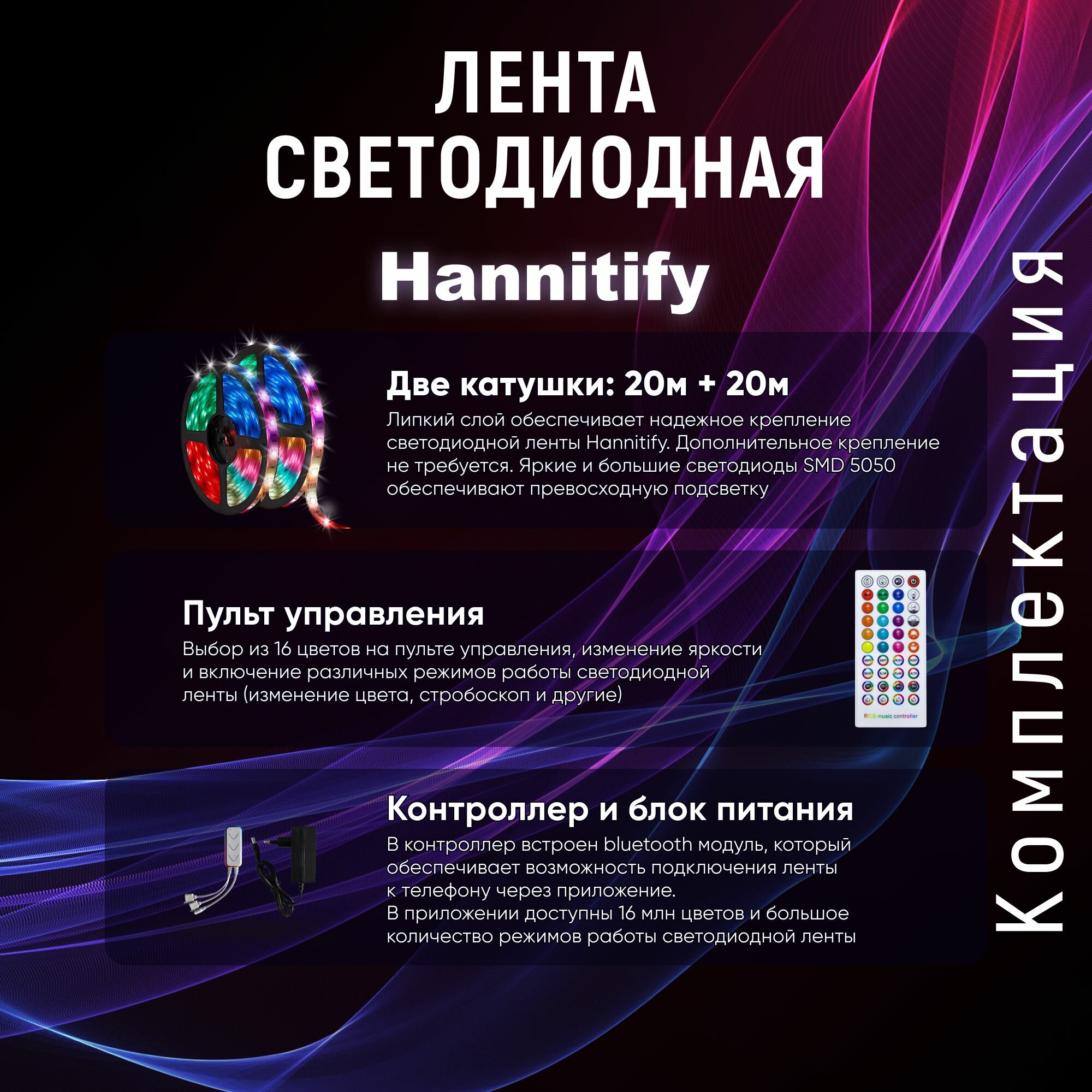 - Светодиодная лента Hannitify состоит из SMD светодиодов RGB.
