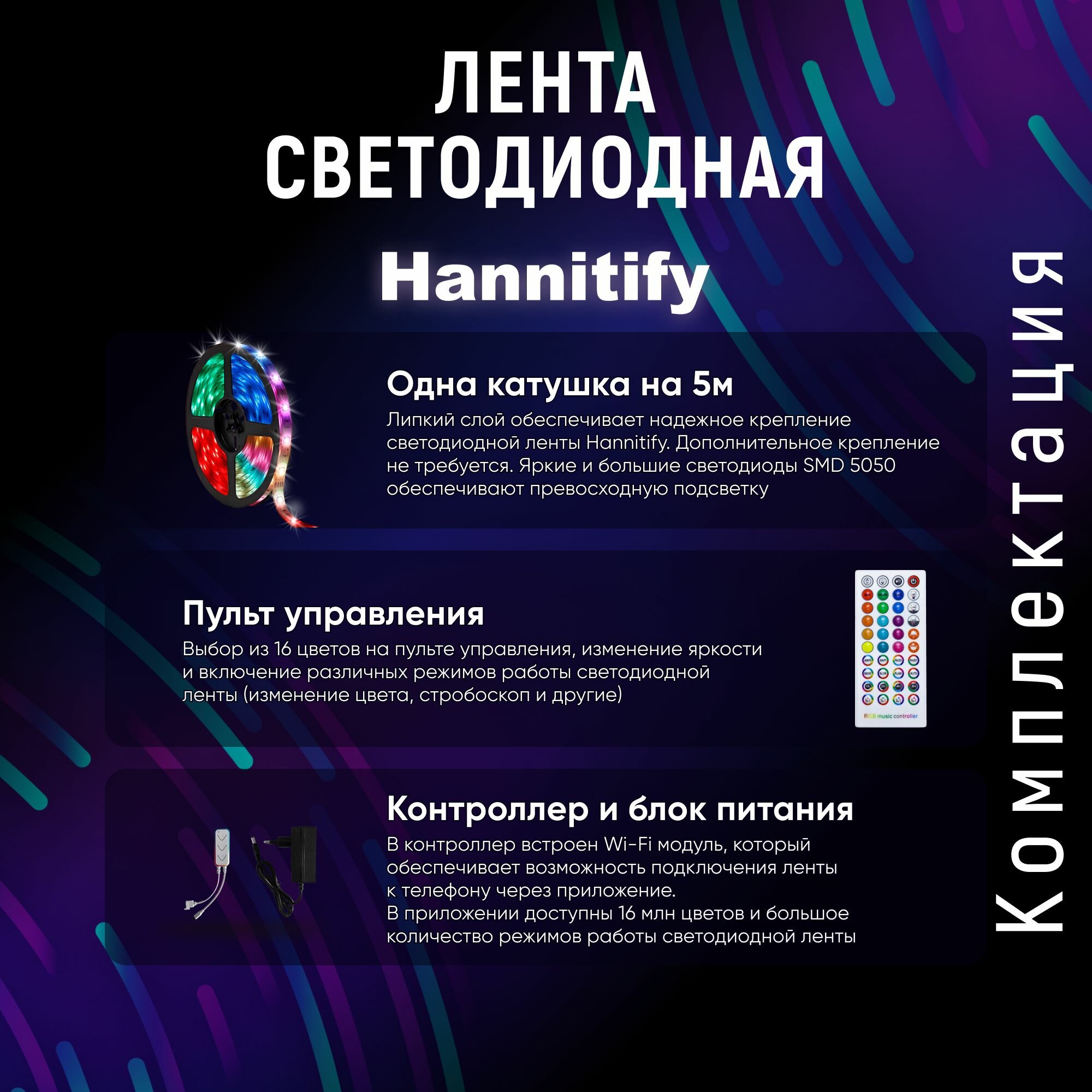 - Светодиодная лента Hannitify состоит из SMD светодиодов RGB.