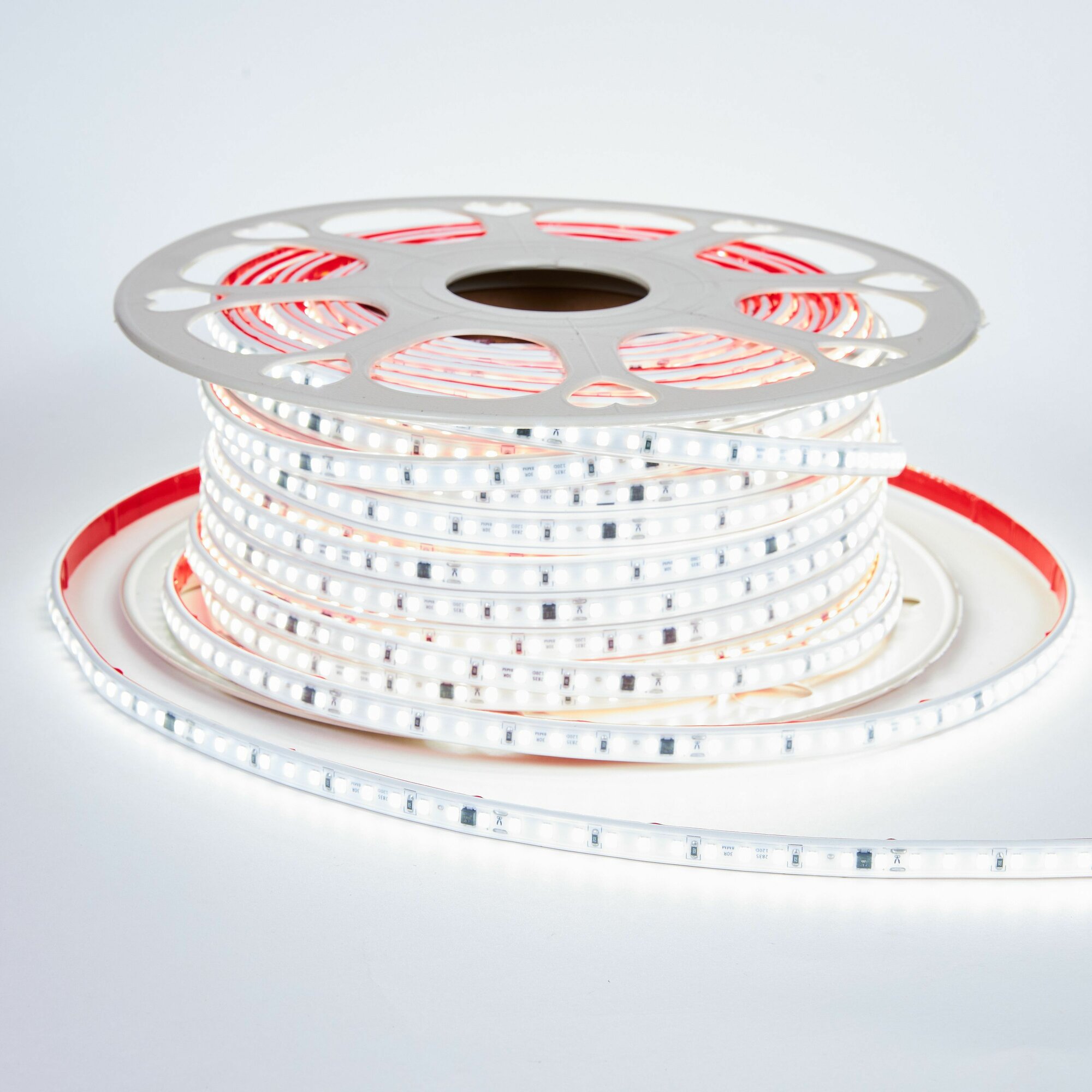 Купить Светодиодная лента LUX 220V «Eleganz», 120 LED, 9,6 Вт 2835, IP65 Холодный белый свет 5800-6300К (самокляющаяся основа). Лента 25м с доставкой по всей России.