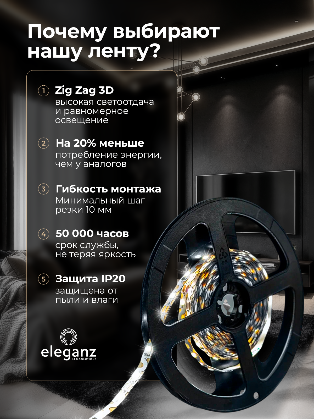 | Дополнительная информация | Высококачественная светодиодная лента от официального онлайн-магазина бренда светодиодной продукции "ELEGANZ" |