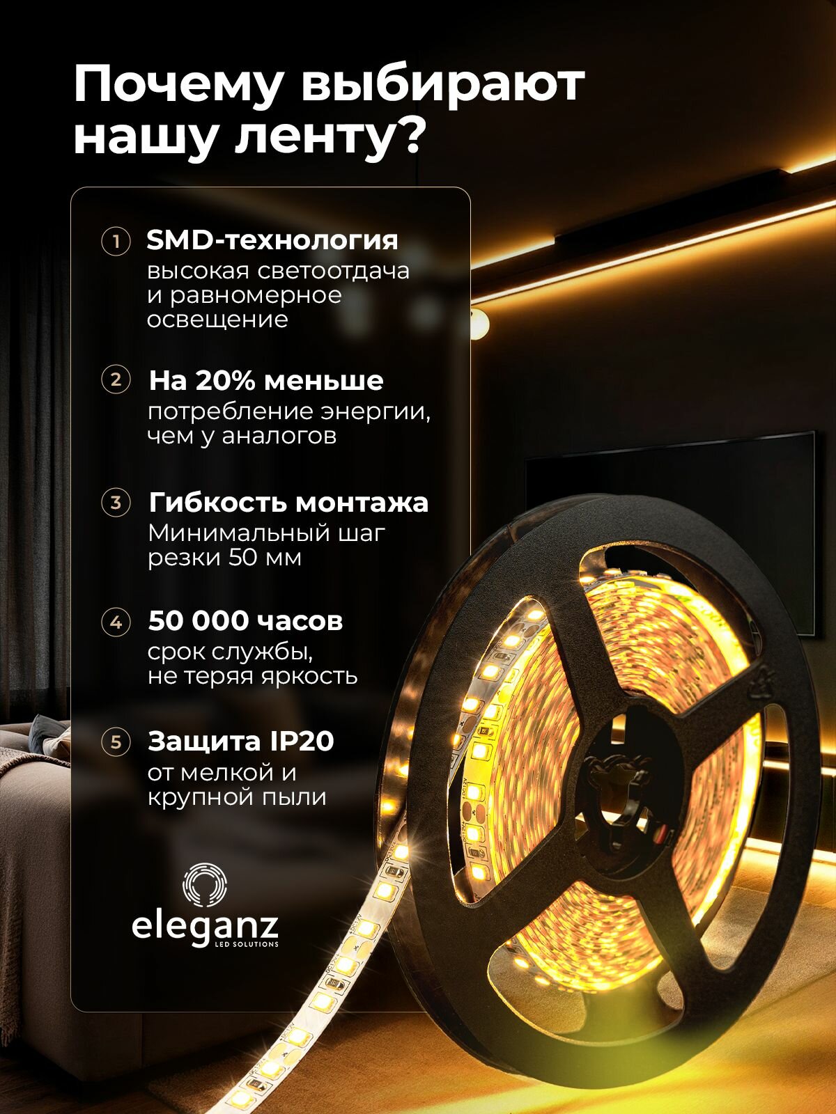 | Дополнительная информация | Высококачественная светодиодная лента от официального онлайн-магазина бренда светодиодной продукции "ELEGANZ" |