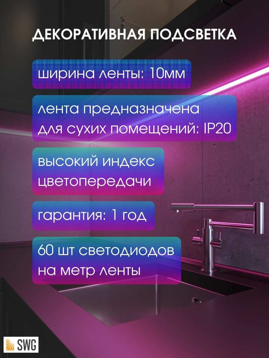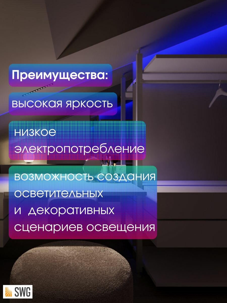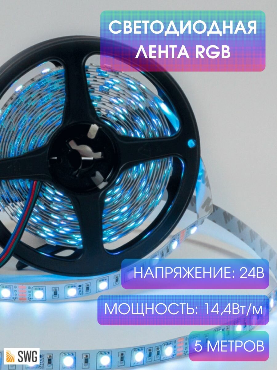 SWG разноцветная светодиодная лента RGB 14,4Вт/м 24В IP20 SMD5050 5 метров: сравнение цен, характеристики, фото, актуальное наличие и цены.