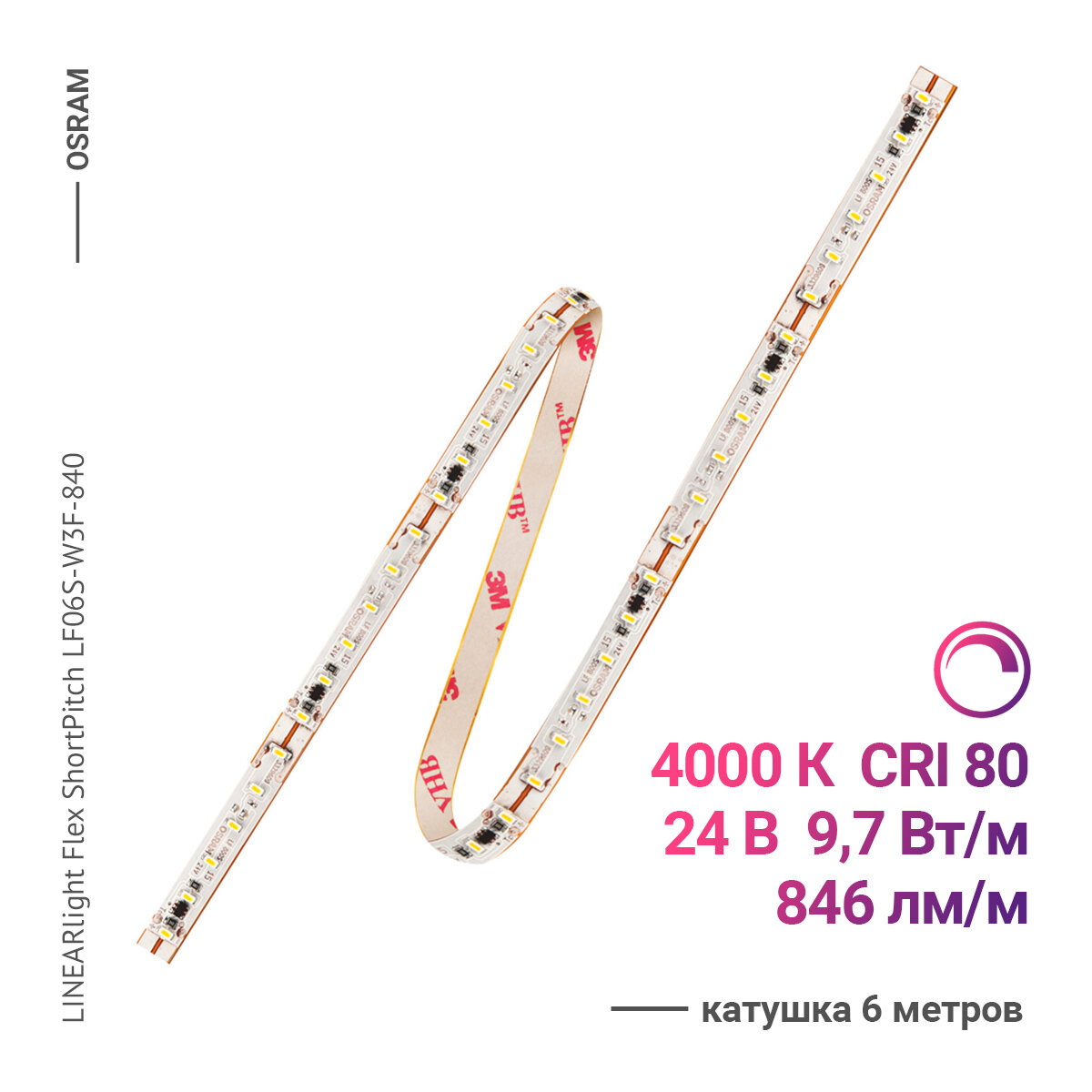 Светодиодная лента OSRAM LF06S-W3F-840 ShortPitch, Нейтральный белый свет, длина 6 м, 4000 К, 24 В, IP00, 120 LED/m: сравнение цен, характеристики, фото, актуальное наличие и цены.