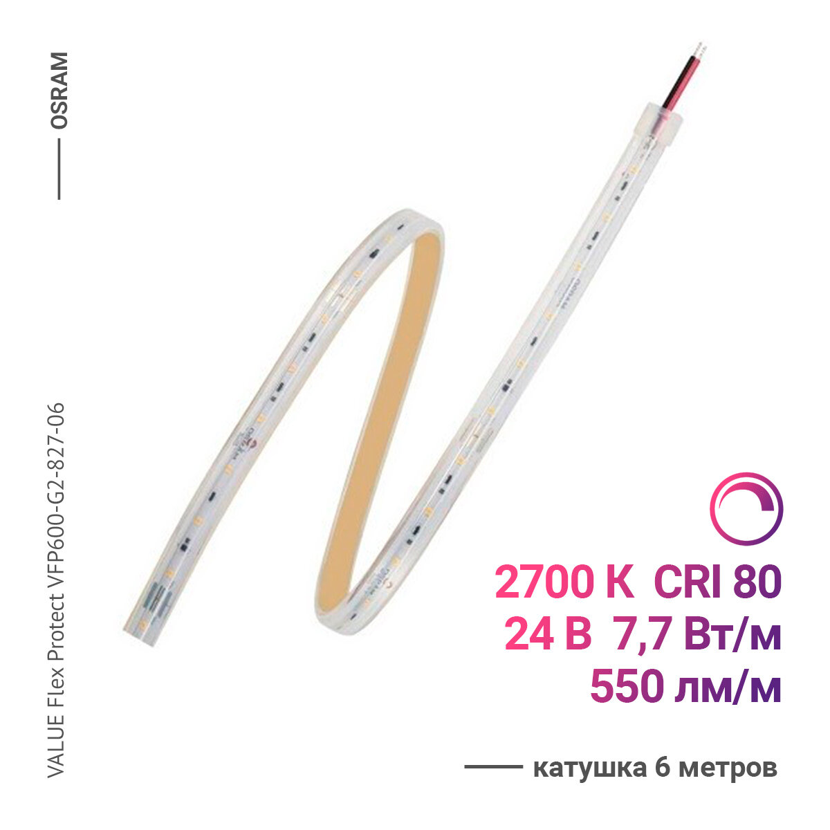 Купить Светодиодная лента OSRAM VFP600-G2-827-06, Теплый белый свет, длина 6 м, 2700 К, 24 В, IP66, 36 LED/m с доставкой по всей России.
