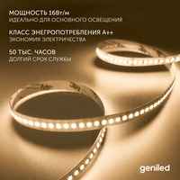 Светодиодная лента, подсветка Geniled — для комнаты, в гардероб, на кухню — Белый теплый свет / GL-180SMD2835 / 1500лм/м / 12В / Длина — 2м / B — 10 мм / W — 16 вт / 3000 К / IP65