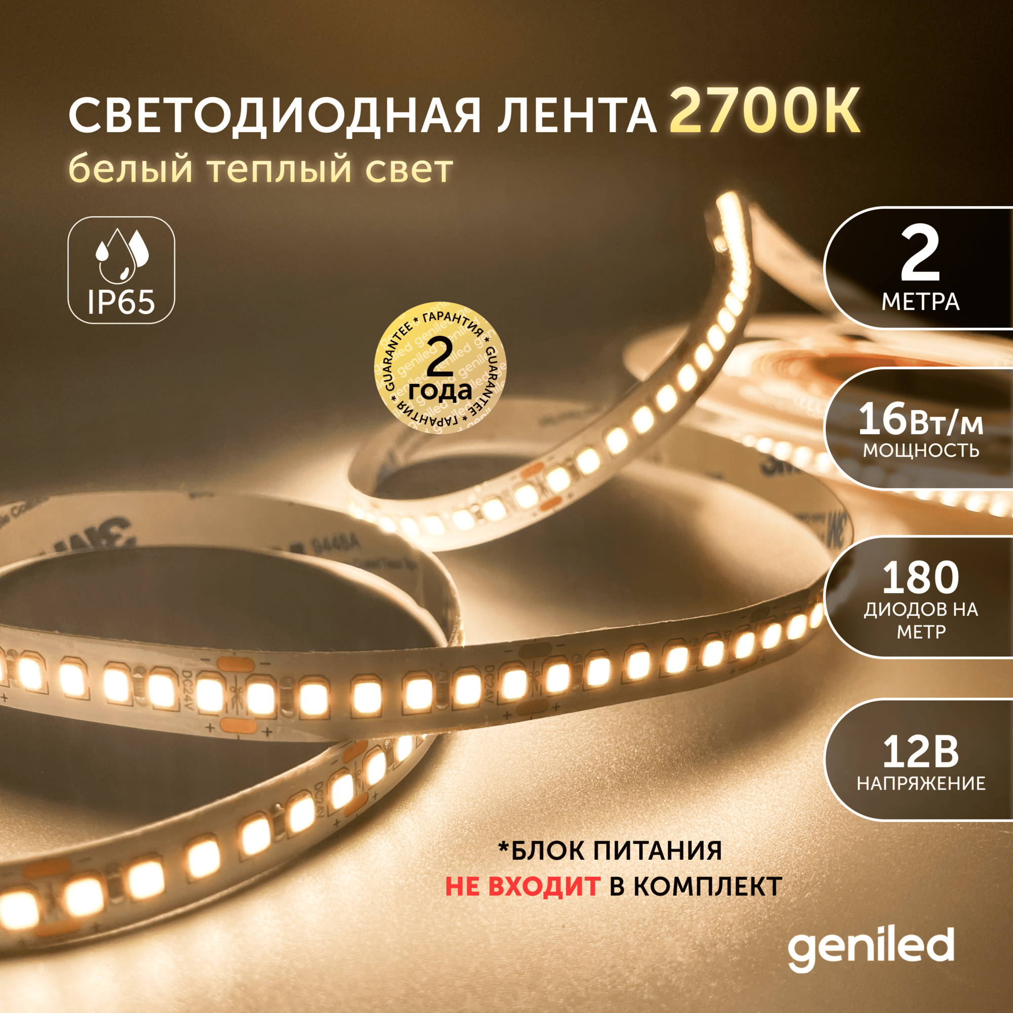 Светодиодная лента, подсветка Geniled — для комнаты, в гардероб, на кухню — Белый теплый свет / GL-180SMD2835 / 1500лм/м / 12В / Длина — 2м / B — 10 мм / W — 16 вт / 3000 К / IP65: сравнение цен, характеристики, фото, актуальное наличие и цены.
