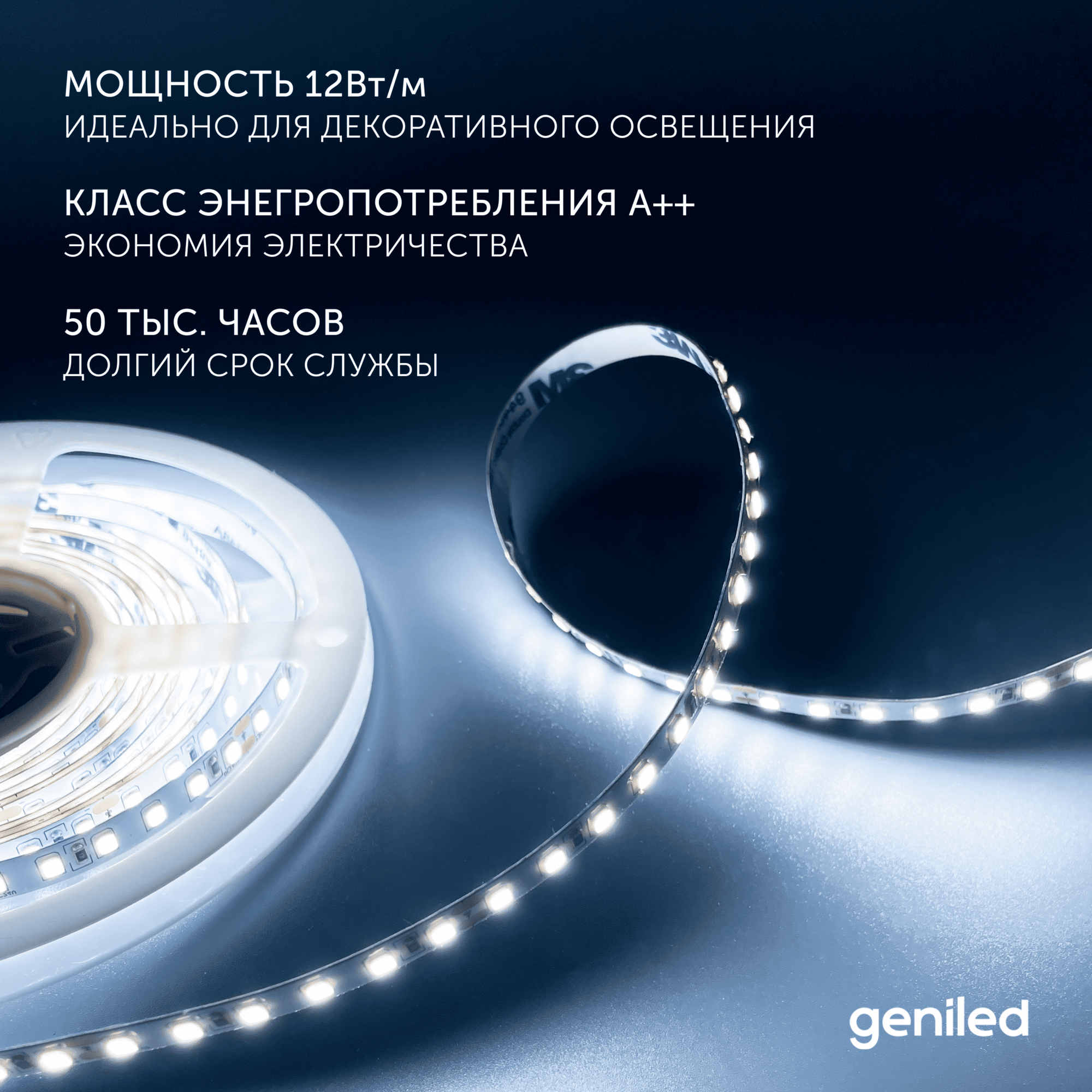 Светодиодная лента, подсветка Geniled — для комнаты, в гардероб, на кухню, на улицу, в ванную — Холодный белый свет / GL-120SMD2835 / 1250 Лм/м / 12В / длина — 5м / B — 8 мм / W — 12Вт / 6500 К / IP65: сравнение цен, характеристики, фото, актуальное наличие и цены.