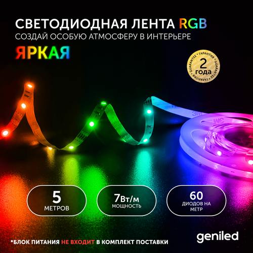 Светодиодная лента, подсветка Geniled — для комнаты, в гардероб, на кухню, на улицу, в ванную — Разноцветный свет / GL-30SMD5050 / 12В / Длина — 5м / B — 10 мм / W — 7 вт / RGB / IP65: сравнение цен, характеристики, фото, актуальное наличие и цены.