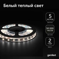 Купить Geniled Светодиодная лента с теплым белым светом GL- 60SMD2835 12В 500Лм/м 5Вт/м 8х5000мм 2700-3000К IP33 с доставкой по всей России.