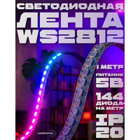 Купить Светодиодная лента PrestigeLamps RGB 144 LED/m – адресная, 5В, IP20, 1 метр, многоцветная подсветка с доставкой по всей России.