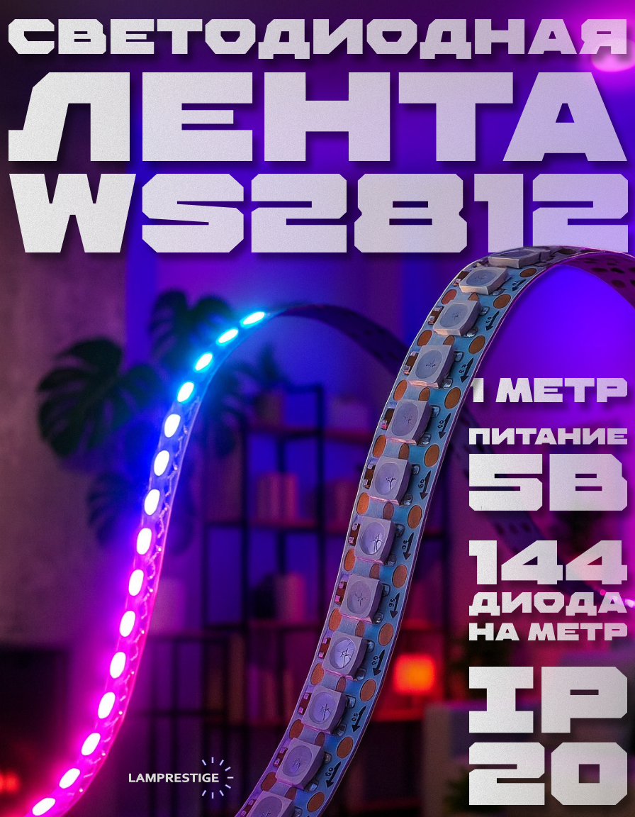 Светодиодная лента PrestigeLamps RGB 144 LED/m – адресная, 5В, IP20, 1 метр, многоцветная подсветка: сравнение цен, характеристики, фото, актуальное наличие и цены.
