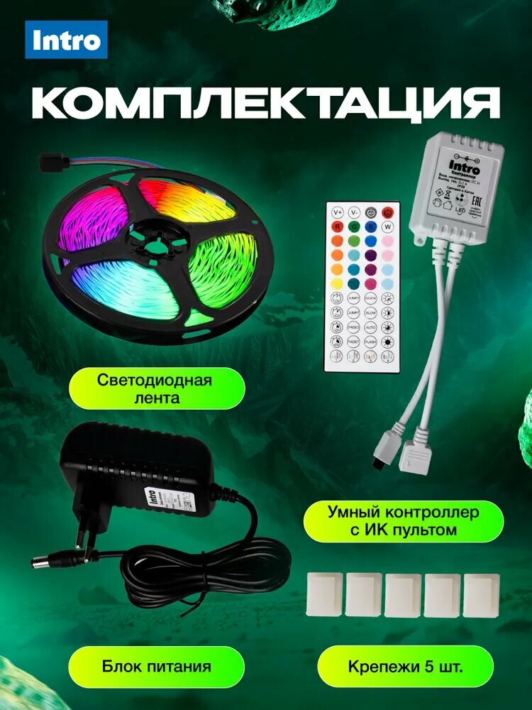 Купить Светодиодная лента RGB 24 В Intro 5050Kit умная с пультом и блоком питания, 15 м, 12 Вт с доставкой по всей России. Светодиодная лента RGB 24 В Intro 5050Kit умная с пультом и блоком питания, 15 м, 12 Вт: сравнение цен, характеристики, фото, актуальное наличие и цены.
