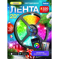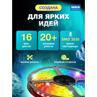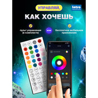 Новогодняя светодиодная лента Intro 5050Kit-16-24V-IP20-RGB-20m — универсальное решение для эффектной светодиодной подсветки в любом пространстве. RGB диодная led лента длиной 20 метров подходит как для праздничного оформления, так и для повседневного освещения. Идеальна в качестве новогоднего декора или подсветки для комнаты или кухни, создаёт тёплую атмосферу в доме, на празднике или вечеринке. Умный контроллер поддерживает более 16 000 000 оттенков свечения, множество статических и динамических режимов. В мобильном приложении или с помощью ИК-пульта (в комплекте) вы можете выбрать музыкальный режим, в котором ргб диодная лента будет моргать в такт включенной музыке; настроить расписание для включения и выключения ленты или даже создать свой уникальный режим свечения. Отличительная особенность лед лент Intro от других производителей — крупные светодиоды SMD 3535. На один метр 16 светодиодов. Лента работает от сети 220В через адаптер 24В. Гибкая светодиодная лента крепится на самоклеящуюся основу и надежно фиксируется на любой поверхности. Перед креплением обязательно обезжирьте поверхность. LED лента Intro подходит для подсветки телевизора, монитора, а также на кухню под шкаф или для комнаты на потолок. Вы также можете использовать светодиодную ленту в качестве новогодней подсветки для украшения помещения к праздникам. Благодаря ярким RGB-эффектам и насыщенным цветам она создаёт атмосферу волшебства и уюта, превращая любое пространство в праздничную локацию. Светящаяся новогодняя лента 5050Kit станет идеальным украшением на елку. С ргб лентами от Intro праздничное настроение будет в каждом уголке вашего дома!