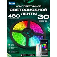 Новогодняя светодиодная лента Intro 5050Kit-16-24V-IP20-RGB-30m — универсальное решение для эффектной светодиодной подсветки в любом пространстве. RGB диодная led лента длиной 30 метров подходит как для праздничного оформления, так и для повседневного освещения. Идеальна в качестве новогоднего декора или подсветки для комнаты или кухни, создаёт тёплую атмосферу в доме, на празднике или вечеринке. Умный контроллер поддерживает более 16 000 000 оттенков свечения, множество статических и динамических режимов. В мобильном приложении или с помощью ИК-пульта (в комплекте) вы можете выбрать музыкальный режим, в котором ргб диодная лента будет моргать в такт включенной музыке; настроить расписание для включения и выключения ленты или даже создать свой уникальный режим свечения. Отличительная особенность лед лент Intro от других производителей — крупные светодиоды SMD 3535. На один метр 16 светодиодов. Лента работает от сети 220В через адаптер 24В. Гибкая светодиодная лента крепится на самоклеящуюся основу и надежно фиксируется на любой поверхности. Перед креплением обязательно обезжирьте поверхность. LED лента Intro подходит для подсветки телевизора, монитора, а также на кухню под шкаф или для комнаты на потолок. Вы также можете использовать светодиодную ленту в качестве новогодней подсветки для украшения помещения к праздникам. Благодаря ярким RGB-эффектам и насыщенным цветам она создаёт атмосферу волшебства и уюта, превращая любое пространство в праздничную локацию. Светящаяся новогодняя лента 5050Kit станет идеальным украшением на елку. С ргб лентами от Intro праздничное настроение будет в каждом уголке вашего дома!