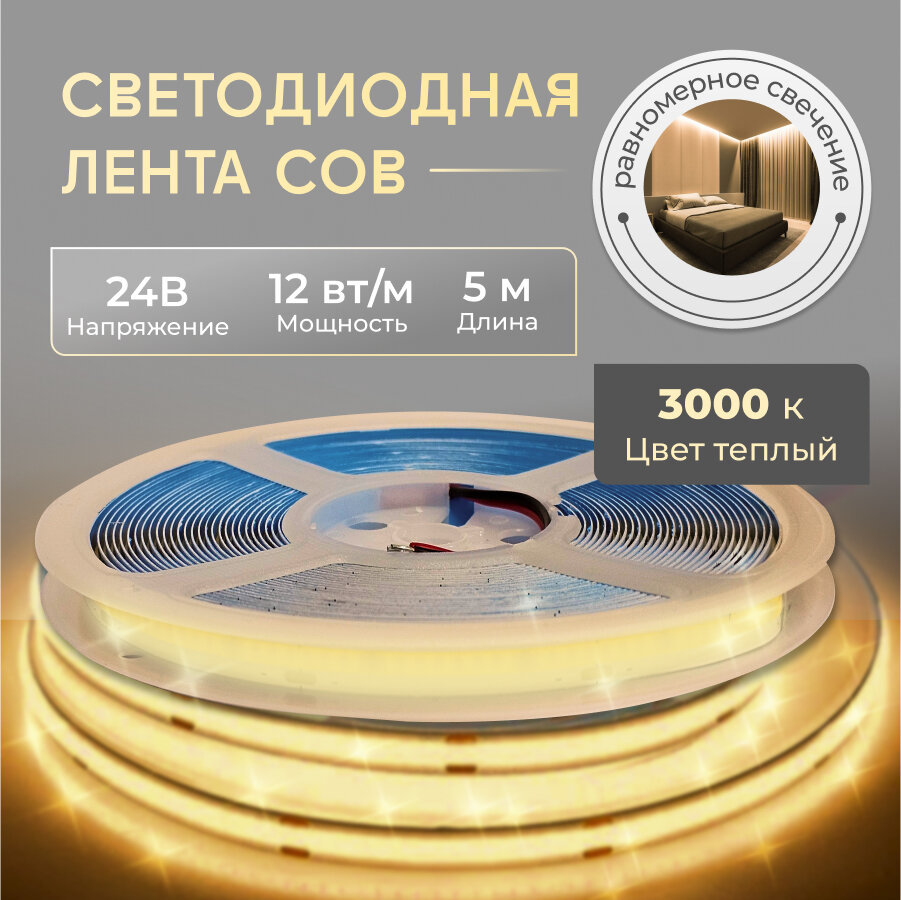 Купить Светодиодная лента, сплошное COB, 5 м, 24В, IP20, 320 LED/m, 12W/м, 3000K, теплый с доставкой по всей России. Светодиодная лента, сплошное COB, 5 м, 24В, IP20, 320 LED/m, 12W/м, 3000K, теплый: сравнение цен, характеристики, фото, актуальное наличие и цены.