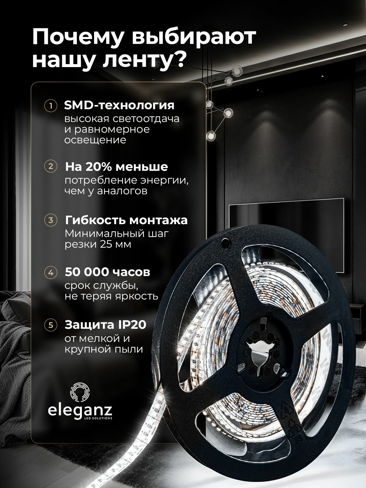 Светодиодная лента Standard «Eleganz 12В», 24 Вт 2835, 240 LED, IP20 холодный белый, 5м: сравнение цен, характеристики, фото, актуальное наличие и цены.