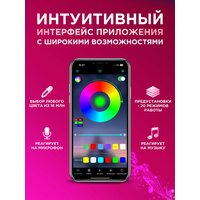 Светодиодная лента TechHouse крутая многоцветная RGB подсветка. Крупные монохромные светодиоды SMD 5050 имеют более 16 млн вариаций свечения на цветовом спектре. Управление подсветкой осуществляется с помощью мобильного приложения Lotus Lantern через Bluetooth соединение и пульта ДУ. Светящаяся LED лента содержит более 35 режимов работы, в том числе стробоскоп, регулировка яркость, расписание, градиент. Специальные режимы синхронизация с музыкой, реакция на микрофон, таймер. Многофункциональный пульт ргб с расширенными возможностями DIY позволит смешивать цвета, не используя смартфон. Работает от сети 220В (вольт), 12V и светиться равномерно ярко по всей длине, шнур блока адаптера 70 см. Имеет внешний микрофон.
