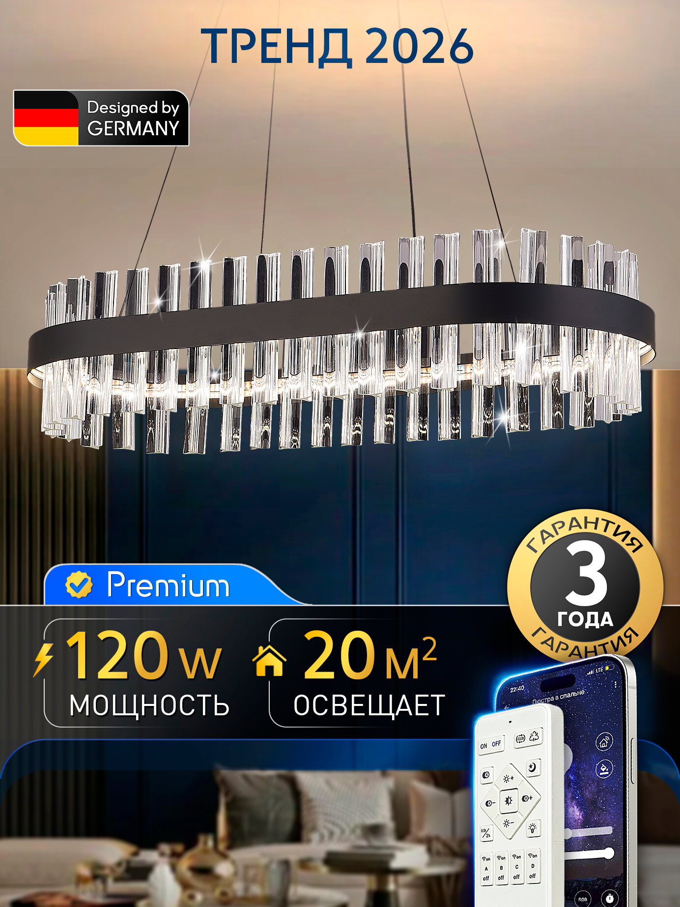 Светодиодная люстра нимб с пультом ДУ, моб. приложением 120W, чёрный, LED